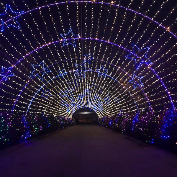 The entrance is a spectacular preview to the dazzling lights and displays that line one of Austin’s top community events, the annual Trail of Lights. Photo courtesy Austin Trail of LightsAttracting 400,000 people annually, with more than 65 displays, 2.5 million lights, Austin’s famous food trucks and restaurants (including Wholly Cow Burgers, Amy’s Ice Cream and Austin’s Pizza), nightly entertainment and holiday activities, the Trail of Lights continues to create treasured memories and ignite family traditions.This illuminated tunnel of falling stars and never-ending blanket of lights is an example of the type of artful displays visitors to the Trail can expect to see. Courtesy photo
