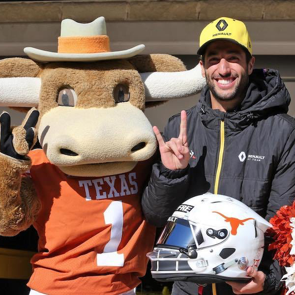 Austin’s favorite Aussie Daniel Ricciardo, who wears a Texas cowboy during the week of the race, first fell in love with the Music Capital of the World during his 2014 U.S. Grand Prix debut with Red Bull, finished this year’s race in sixth place. Sporting a Texas Longhorn crash helmet, the now Renault driver is known for his larger-than-life smile that can light up the Texas sky.